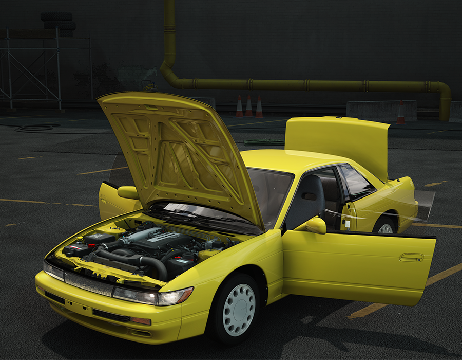 This research phase was essential for creating animations that feel authentic—the way the doors swing, how the hood opens, the travel of the shifter—all based on real S13 behavior.